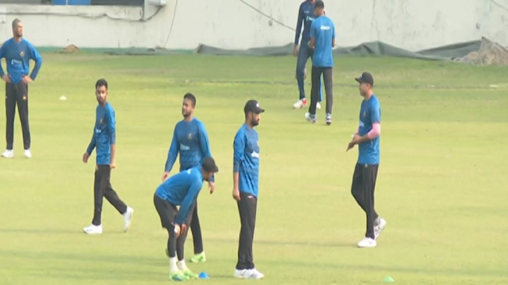 ড্রেসিংরুম থেকে ইনডোরের নেটে এসে ব্যাটিংয়ের অপেক্ষায় সাকিব। সেখানে আগে থেকেই ব্যাটিং অনুশীলনে ছিলেন তামিম। খানিক বাদে ব্যাটিং করলেন পাশাপাশি নেটে।