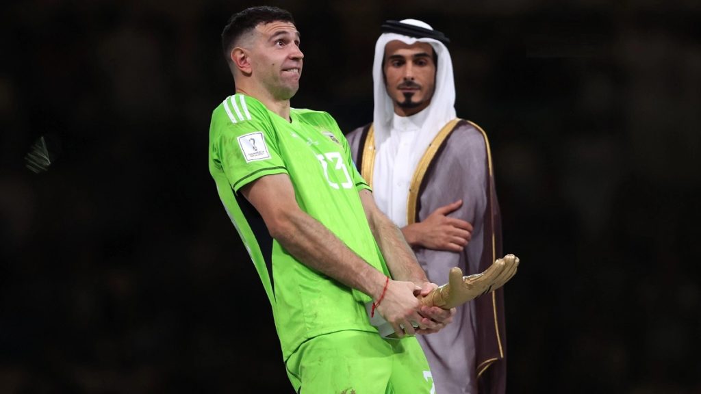 গোলবারের প্রহরী হিসেবে ফুটবলের ‘এলিট’ ক্লাবে যাকে বছরখানেক আগেও বিবেচনা করা হতো না, সেই এমিলিয়ানো মার্টিনেজ জিতে নিয়েছেন ফিফার বর্ষসেরা গোলরক্ষক ২০২২’র পুরস্কার। কাতার বিশ্বকাপেও সেরা গোলরক্ষক হিসাবে পেয়েছিলেন গোল্ডেন গ্লাভস। তবে, ট্রফি নিয়ে মঞ্চে বিতর্কিত অঙ্গভঙ্গি করে সমালোচনায়ও পড়েন তিনি। মার্টিনেজের দাবি, সতীর্থদের প্ররোচনাতেই গোল্ডেন গ্লাভস পুরস্কার নেয়ার পর অশালীন ভঙ্গি করেছিলেন তিনি। খবর ইএসপিএনের।