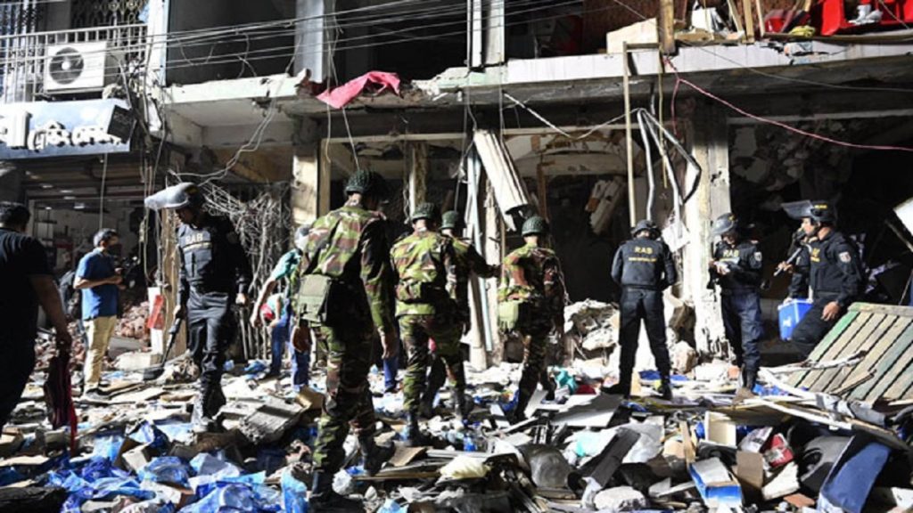 মঙ্গলবার (৭ মার্চ) বিকেল পৌনে ৫টার দিকে এ ঘটনা ঘটে বলে জানা গেছে। পরে খবর পেয়ে ঘটনাস্থলে যায় ফায়ার সার্ভিসের উদ্ধারকর্মীরা। বর্তমানে ফায়ারের ১১টি ইউনিট উদ্ধার কার্যক্রম চালাচ্ছে। সাথে উদ্ধার কাজে যোগ দিয়েছে সেনাবাহিনী ও পুলিশের বোম্ব ডিসপোজাল ইউনিট।