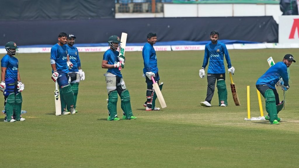 ওয়ানডে সিরিজের পর মাত্র এক দিনের অনুশীলনে ইংল্যান্ডের বিপক্ষে প্রথম টি-টোয়েন্টি ম্যাচে খেলতে নামবে বাংলাদেশ। তাইতো অন্যরা যখন নেটে ব্যস্ত তখন টাইগার দলপতি সাকিব আল হাসান সরাসরি সেন্টার উইকেটে এসে লম্বা সময় করলেন পাওয়ার হিটিং অনুশীলন। অধিনায়কের পথ ধরে একে একে লিটন কুমার দাস, নাজমুল হোসেন শান্ত, আফিফ হোসেন ও রনি তালুকদার আসেন। এরপরেই তাদের ব্যাটিং দীক্ষা দেন সাকিব।