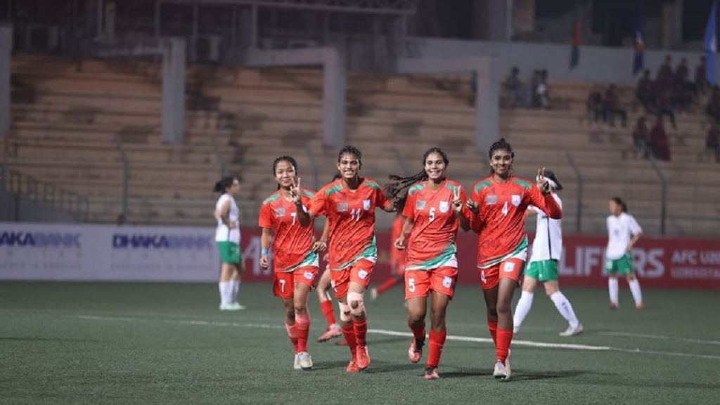 এএফসি অনূর্ধ্ব-২০ নারী এশিয়ান চ্যাম্পিয়নশিপে র্যাঙ্কিংয়ে এগিয়ে থাকা তুর্কমেনিস্তানের বিপক্ষে ৪-০ গোলের জয় পেয়েছে বাংলাদেশ। প্রথমার্ধে ১-০’তে এগিয়েছিল স্বাগতিকরা। দু’টি করে গোল করেছেন আকলিমা খাতুন ও স্বপ্না রানী।