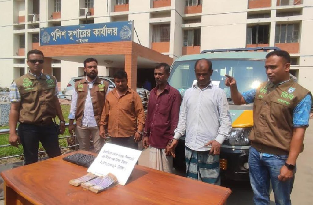 গাইবান্ধায় ব্যবসা প্রতিষ্ঠানে ডাকাতির ঘটনায় সংঘবদ্ধ ডাকাত চক্রের মূল হোতা নাছির উদ্দিন মোল্লা ও দেলোয়ার হোসেনসহ তিন ডাকাতকে গ্রেফতার করেছে গাইবান্ধা গোয়েন্দা পুলিশ (ডিবি)। এ সময় তাদের কাছ থেকে ডাকাতির কাজে ব্যবহৃত একটি পিকআপ ও নগদ ২ লাখ ৫০ হাজার টাকা এবং একটি কম্পিউটার কিবোর্ড উদ্ধার করা হয়।