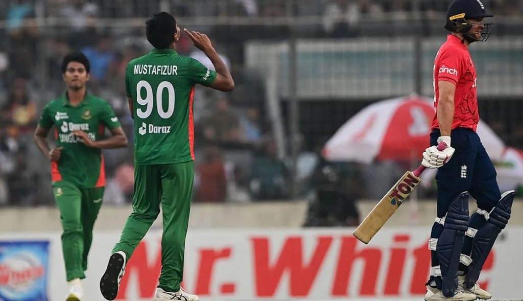এর আগে, মিরপুর শের-ই-বাংলা জাতীয় ক্রিকেট স্টেডিয়ামে টস জিতে প্রথমে ফিল্ডিং করার সিদ্ধান্ত নেয় ইংলিশ অধিনায়ক জস বাটলার। আন্তর্জাতিক টি-টোয়েন্টিতে লিটন দাসের ক্যারিয়ার সেরা অনবদ্য ৭৩ রান এবং ইনফর্ম নাজমুল হোসেন শান্ত’র অপরাজিত ৪৭ রানের ওপর ভর করে ১৫৮ রানের লড়াকু পুঁজি পায় বাংলাদেশ। আর সময়পযোগী নিয়ন্ত্রিত বোলিংয়ে টাইগাররা জানিয়ে দিলো, প্রতিপক্ষ বিশ্ব চ্যাম্পিয়ন হলেও নিজেদের মাটিতে যেন বরাবরের মতোই ল্যান্ডমাইন পুঁতে রেখেছিল বাংলাদেশ।