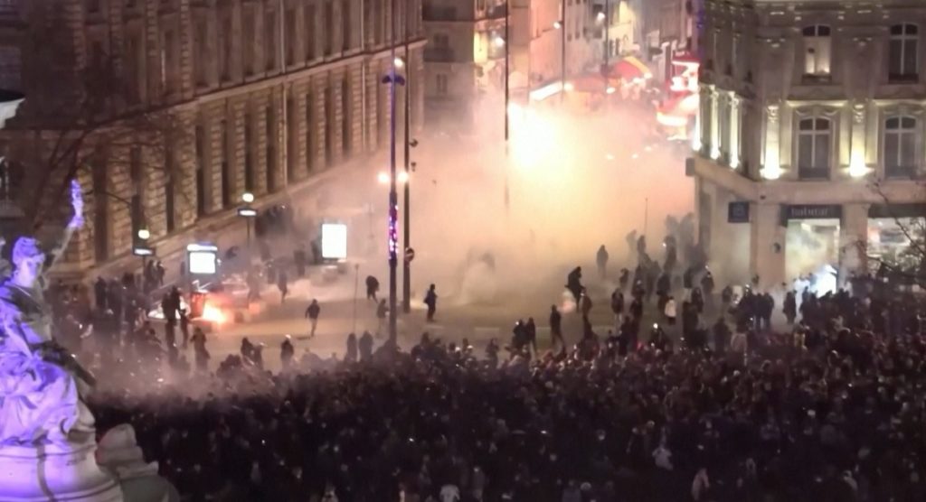 ফ্রান্সে লাগাম টানা যাচ্ছে না বিক্ষোভ-সহিংসতার। অবসরের বয়সসীমা বৃদ্ধির বিতর্কিত আইন পাসের অনুমোদন দেয়ার ৬ষ্ঠ দিন পার হলেও এখনো উত্তাল রয়েছে প্যারিস। সমাবেশ থেকে আটক করা হয়েছে কয়েকশ’ বিক্ষোভকারীকে। খবর বার্তা সংস্থা রয়টার্সের।