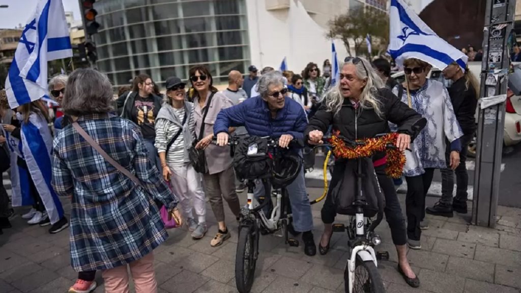 রাজপথে বিক্ষোভ করছেন দাদী-নানীরা। ব্যতিক্রমী এমন আন্দোলন দেখা গেল ইসরায়েলে। চলমান সরকারবিরোধী বিক্ষোভে অংশ নিতে গ্রান্ডমাদারস ফর ডেমোক্রেসি নামের একটি সংগঠনও গঠন করেছেন প্রবীণ নারীরা। বিচার বিভাগ সংস্কার সংক্রান্ত আইন পাসের বিরোধীতা করে নেতানিয়াহু প্রশাসনের বিরুদ্ধে রাজপথে সরব থাকার ঘোষণা দিয়েছেন তারা। খবর আউটলুক ইন্ডিয়ার।