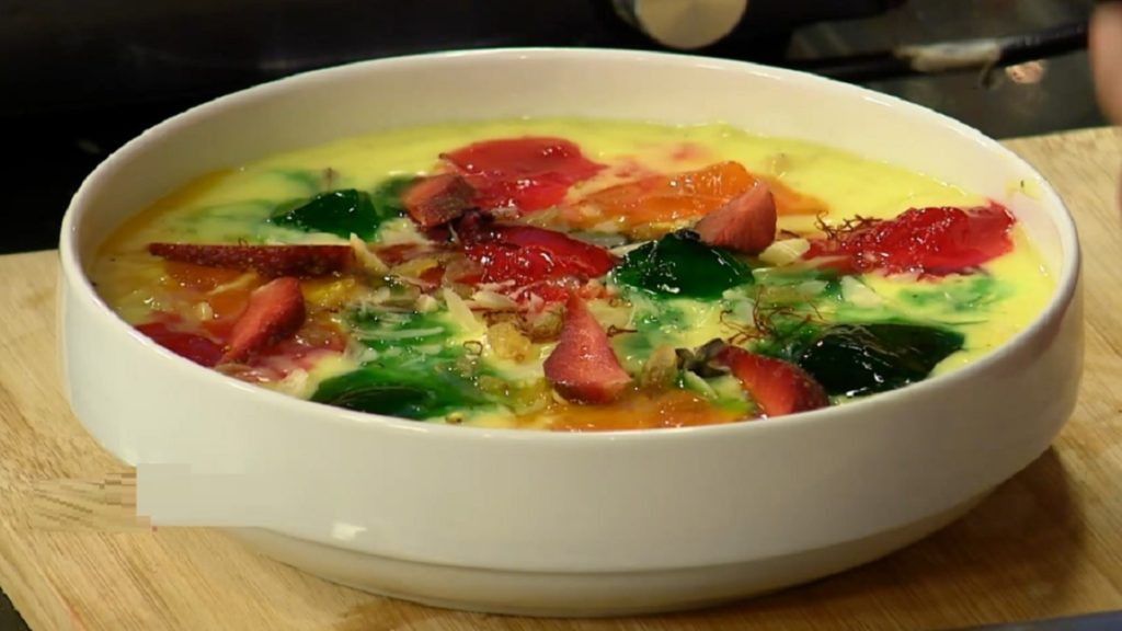 ঐতিহ্যবাহী এই ডেজার্ট তৈরি করতে হাতের কাছে রাখুন দুধ ১/২ লিটার, চিনি, ২ টেবিল চামচ কাস্টার্ড পাউডার, ৫০ গ্রাম সেদ্ধ নুডুলস, পেস্তা বাদাম, কিশমিশ ১০ গ্রাম ও ১০০ মিলি ক্রিম, কলা, সামান্য জাফরন। এছাড়াও লাগছে লাল, সবুজ ও হলুদ জেল, এলাচ গুঁড়া ও রুহ আফজা ১ টেবিল চামচ।