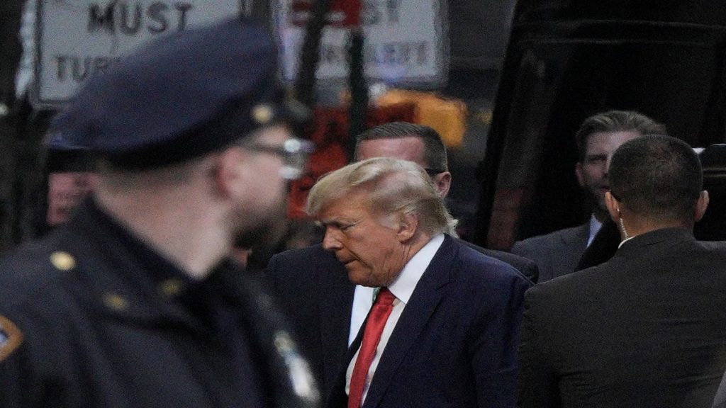 ফৌজদারি মামলায় গ্রেফতার ও আদালতে শুনানির পর মুক্তি পেয়েছেন সাবেক মার্কিন প্রেসিডেন্ট ডোনাল্ড ট্রাম্প। স্থানীয় সময় মঙ্গলবার শুনানি শেষে ম্যানহাটনের আদালত কক্ষ ত্যাগ করেন তিনি। আদালত থেকে বেরিয়ে বাইরে পার্ক করা মোটরকেডে ওঠেন পড়েন ট্রাম্প। কথা বলেননি গণমাধ্যমের সাথে। এমনকি সঙ্গীদের সাথেও কোনো কথা বলতে দেখা যায়নি তাকে। বিষণ্নতার চিহ্ন আঁকা ছিল আলোচিত-সমালোচিত এই সাবেক মার্কিন প্রেসিডেন্টের চোখেমুখে।
