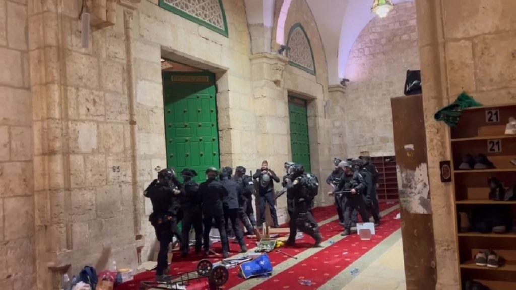 গত বুধবার থেকে আল-আকসা মসজিদে চলছে ইসরায়েলি বাহিনীর নারকীয় আগ্রাসন। নামাজরত মুসল্লিদের বেধড়ক পেটানো হচ্ছে, চলছে ধরপাকড়।