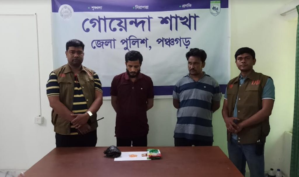 রোববার (৯ এপ্রিল) সন্ধ্যায় উপজেলার কামাতকাজলদিঘী ইউনিয়নের ফুলপাড়া থেকে মামুনকে ও পঞ্চগড় পৌরসভার রামের ডাংগা এলাকা থেকে তুষারকে গ্রেফতার করা হয়। তবে রায়হান (৩২) নামে মামুনের অপর এক সহযোগী পলাতক রয়েছেন। পরে তাদের বিরুদ্ধে রোববার রাতেই পঞ্চগড় সদর থানায় মাদকদ্রব্য নিয়ন্ত্রণ আইনে একটি মামলা দায়ের করেছেন ডিবি পুলিশের উপ-পরিদর্শক (এসআই) লিপন কুমার বসাক। পরে গ্রেফতারকৃতদের সোমবার দুপুরে আদালতে তোলা হলে আদালত তাদের জেলহাজতে পাঠিয়েছে বলে জানায় ডিবি পুলিশ।