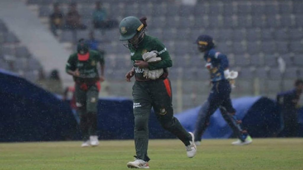 বাংলাদেশ-শ্রীলঙ্কা নারী দলের মধ্যকার তিন ম্যাচ সিরিজের প্রথম ওয়ানডে বৃষ্টিতে পরিত্যক্ত হয়েছে। শনিবার (২৯ এপ্রিল) কলম্বোর পি সারা ওভালে টস জিতে প্রথমে ব্যাটিং করতে নামে স্বাগতিক শ্রীলঙ্কা। ৩৬ দশমিক ৪ ওভারে ৬ উইকেট হারিয়ে ১৫২ রান করে শ্রীলঙ্কা। এরপর বৃষ্টিতে বন্ধ হয় খেলা।