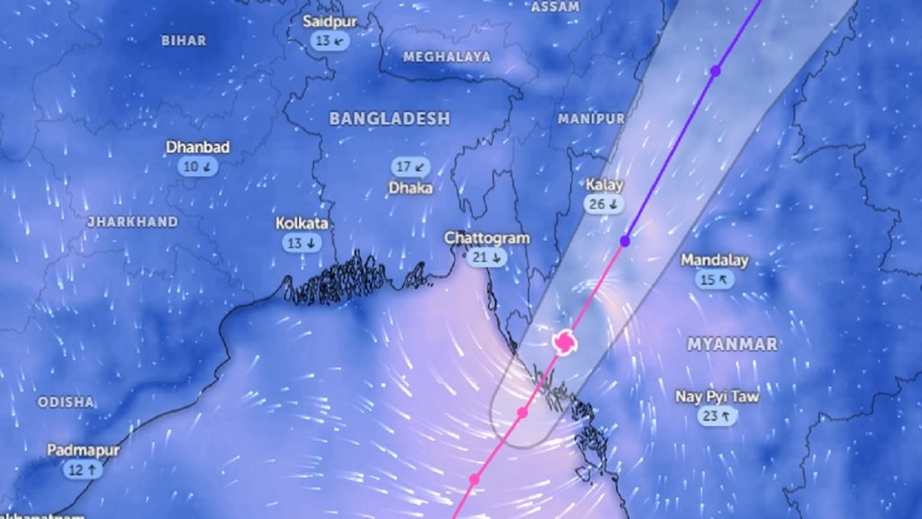 আবহাওয়া অধিদফতরের ব্রিফিংয়ে ২১ নম্বর বিশেষ বিজ্ঞপ্তিতে এসব তথ্য তুলে ধরা হয়। বলা হয়, দুপুর ৩টায় ঘূর্ণিঝড়টি ৩টায় সিটুয়ে হয়ে মিয়ানমার দিকে চলে গেছে। বাতাসের একটানা সর্বোচ্চ গতিবেগ ঘণ্টায় ১২০ থেকে ১৩০ কিলোমিটার পর্যন্ত বৃদ্ধি পাচ্ছে। উপকূলীয় জেলা এবং তাদের দূরবর্তী দ্বীপসমূহকে ১০ নম্বর মহাবিপদ সংকেত দেখিয়ে যেতে বলা হয়েছে।