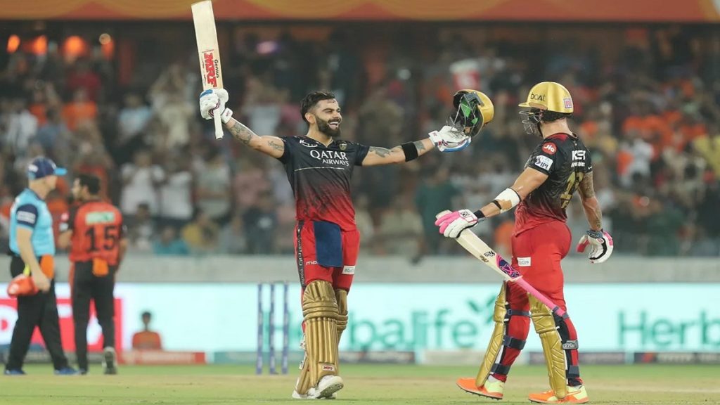 ভিরাট কোহলির বিধ্বংসী সেঞ্চুরি এবং ফাফ ডু প্লেসির ঝড়ো হাফ সেঞ্চুরিতে সানরাইজার্স হায়দ্রাবাদকে ৮ উইকেটের বড় ব্যবধানে হারিয়েছে রয়্যাল চ্যালেঞ্জার্স বেঙ্গালুরু। দীর্ঘ চার বছর পর আইপিএলে সেঞ্চুরির স্বাদ পেলেন ভারতীয় এই মহাতারকা। এই জয়ে আইপিএল পয়েন্ট তালিকার চতুর্থ স্থানে উঠে এলো ডু প্লেসির বেঙ্গালুরু, টিকে থাকল দলটির প্লে-অফের স্বপ্নও।
