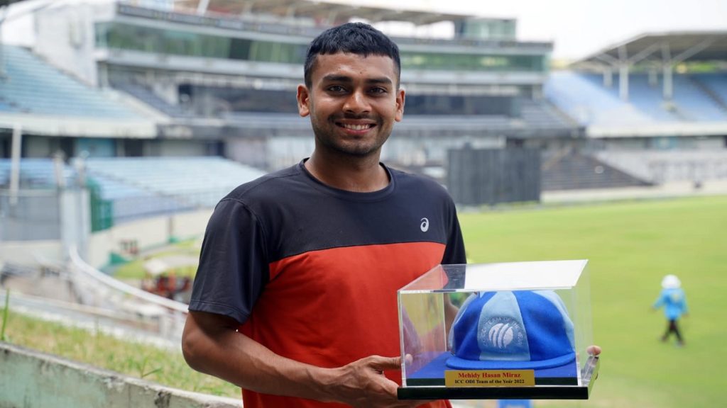 ২০২২ সালে আন্তর্জাতিক ক্রিকেটে দারুণ পারফরমেন্সের সুবাদে আইসিসির বর্ষসেরা ওয়ানডে একাদশে জায়গা পেয়েছেন বাংলাদেশি অলরাউন্ডার মেহেদী হাসান মিরাজ। আইসিসির সেই স্বীকৃতির ওয়ানডে ক্যাপটি আজ হাতে পেয়েছেন মিরাজ।