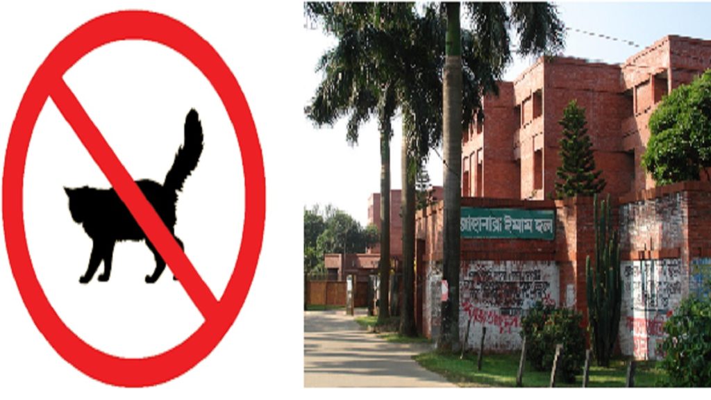 বিড়ালসহ অন্যান্য চতুষ্পদ প্রাণী রাখায় নিষেধাজ্ঞা আরোপ করেছে জাহাঙ্গীরনগর বিশ্ববিদ্যালয়ের জাহানারা ইমাম হল প্রশাসন।