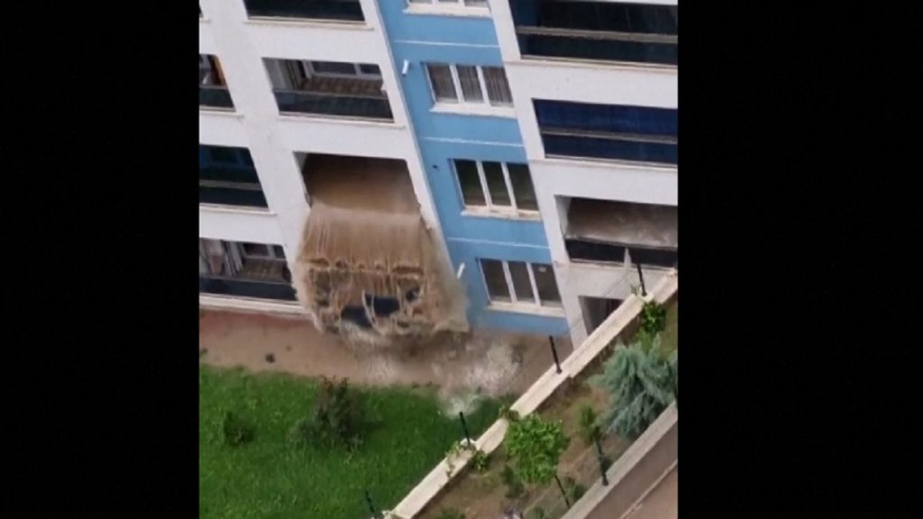 অ্যাপার্টমেন্ট ভবনের দোতলা পর্যন্ত উঠে গেছে বন্যার পানি। পানির প্রবল তোড়ে ভেঙে গেছে বারান্দার কাচের রেলিংও। তুরস্কের আঙ্কারার এমন একটি দৃশ্যের ভিডিও ভাইরাল হয়েছে সামাজিক যোগাযোগ মাধ্যমে। খবর রয়টার্সের।