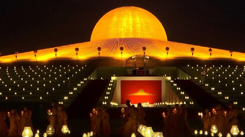 বৌদ্ধ পূর্ণিমা উপলক্ষ্যে ২০ হাজার মানুষ অংশ নেয় বিশাল এ আয়োজনে। বাতি জ্বালিয়ে বিশেষ প্রার্থনা করা হয়। আচার অনুষ্ঠান পালন করেন বৌদ্ধ সন্ন্যাসীরা।