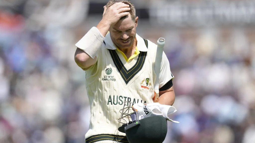 ২২ তম ওভারে শার্দুল ঠাকুরের শর্ট লেন্থ ডেলিভারিতে লেগে কাট করতে যান ওয়ার্নার। কিন্তু শটটি মিস করেন তিনি। ব্যাটে লেগে বল নিচু হয়ে গেলে দারুণ ডাইভে উইকেটের পেছনে ক্যাচ লুফে নেন ভারত। ওয়ার্নারের ইনিংস থামে ৪৩ রানে। লাঞ্চ বিরতিতে যাওয়ার আগে ২৩ ওভার শেষে অসিদের সংগ্রহ ২ উইকেটে ৭৩।
