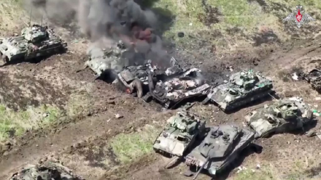 শনিবার (১০ জুন) হামলা সংক্রান্ত ভিডিও ফুটেজ প্রকাশ করে রুশ প্রতিরক্ষা মন্ত্রণালয়। যাতে দেখা যায় ইউক্রেনীয় বাহিনীর ট্যাংক বহরকে লক্ষ্য করে মুহুর্মুহু ড্রোন ও ক্ষেপণাস্ত্র হামলা চালাচ্ছে রুশ বাহিনী। ধ্বংস হয়ে যাওয়া ট্যাংকগুলোর মধ্যে আলোচিত লেপার্ড ট্যাংকও রয়েছে। পাশাপাশি যুক্তরাষ্ট্র থেকে পাঠানো ব্র্যাডলি সাঁজোয়া যানও ধ্বংস করা হয়। অপর একটি ভিডিওতে দেখা যায় ধ্বংস হয়ে যাওয়া ট্যাংকের সারি।
