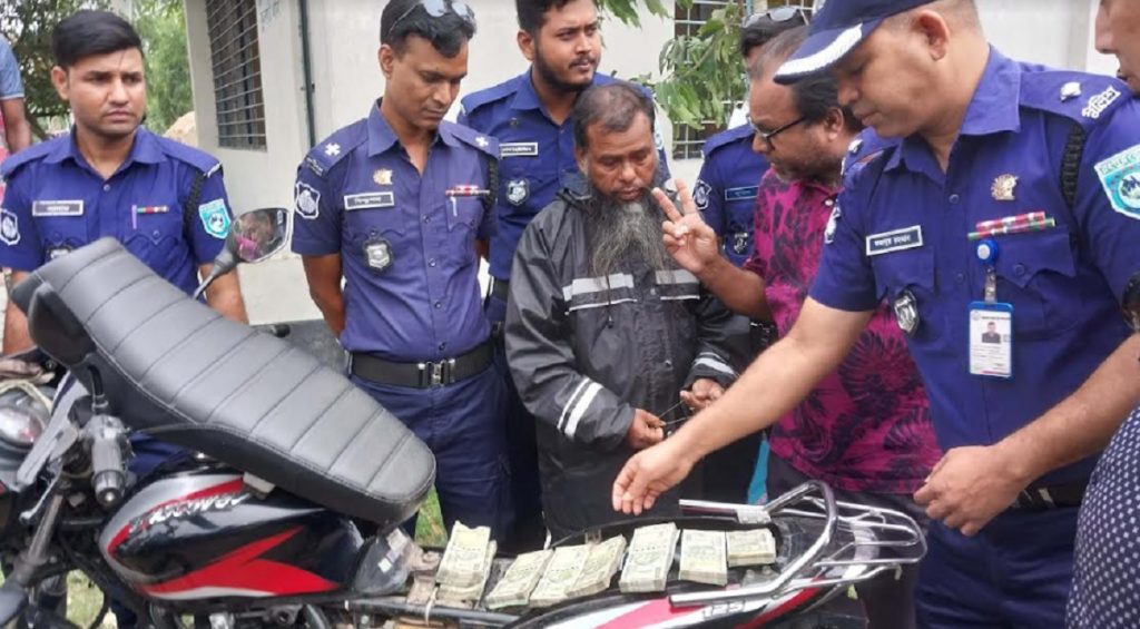 পুলিশ জানায়, গোপন সংবাদের ভিত্তিতে রোববার দুপুরের দিকে ফুলবাড়ী থানার ভারপ্রাপ্ত কর্মকর্তা ফজলুর রহমানের নেতৃত্বে একদল পুলিশ উপজেলার শিমুলবাড়ী এলাকায় শেখ হাসিনা ২য় ধরলা সেতুর পশ্চিম পাড়ে পুলিশের চেকপোস্ট বসে। এ সময় একটি মোটরসাইকেল তল্লাশি করে সিটের নিচ থেকে ভারতীয় ৪ লাখ রুপি এবং বাংলাদেশি ৮ হাজার টাকাসহ হামিদুল ইসলামকে আটক করা হয়। পরে মোটরসাইকেলটিও জব্দ করা হয়।