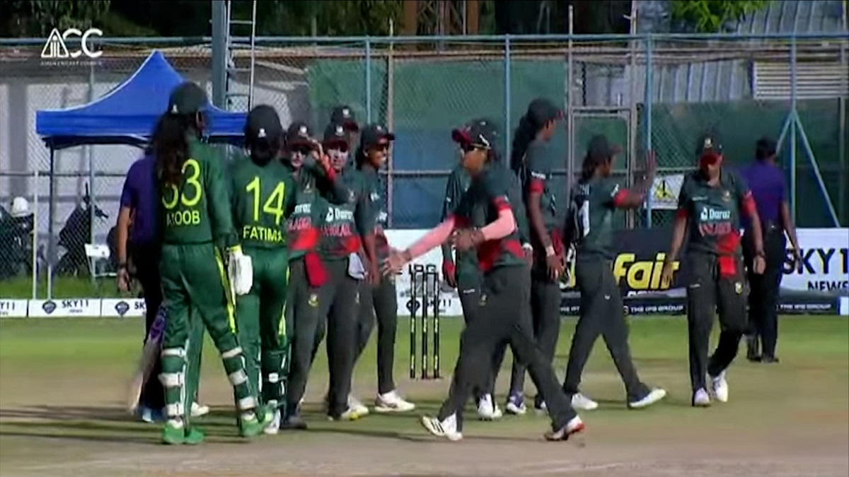 ৬০ রানের লক্ষ্যে ব্যাট করতে নামা মাত্র পাকিস্তানের মেয়েদের চেপে ধরে বাংলাদেশের বাঘিনীরা। শেষ দিকে জিততে দুই ওভারে ২০ রান প্রয়োজন ছিল পাকিস্তানের। সেখান থেকে শেষ ওভারে পাকিস্তানের লক্ষ্য দাঁড়ায় ১৩ রান। শেষ পর্যন্ত সেটিও করতে পারেনি পাক নারীরা। ফলে ৬ রানের জয়ে নারী ইমার্জিং এশিয়া কাপের ফাইনাল নিশ্চিত করেছে টাইগ্রেসরা।