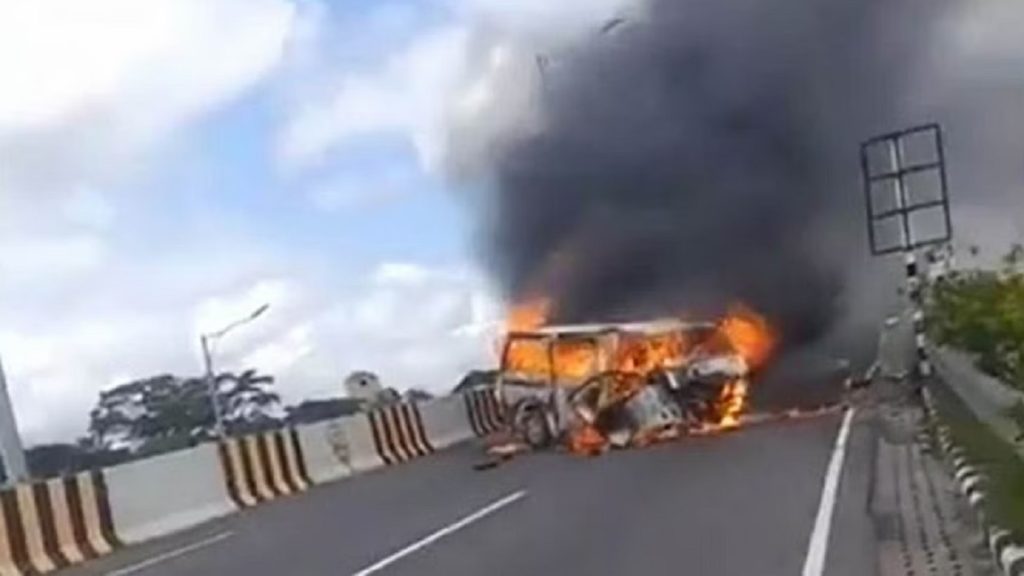 প্রত্যক্ষদর্শীরা জানান, অ্যাম্বুলেন্সটি ভাঙ্গা থেকে ঢাকার দিকে যাচ্ছিল। পথিমধ্যে মালিগ্রাম এলাকায় পৌঁছালে রাস্তার মাঝে থাকা ডিভাইডারে ধাক্কা লেগে আগুন ধরে যায়। এ সময় গাড়িতে থাকা সিলিন্ডারে বিস্ফোরণ ঘটে। এতে অ্যাম্বুলেন্সে থাকা ৭ জন মারা যান এবং একজন আহত হন।