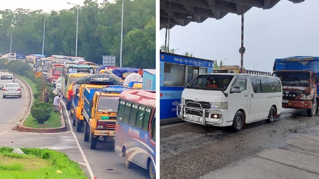 ঈদ যাত্রায় যানবাহনের চাপ বৃদ্ধি পাওয়ায় যানজট এড়াতে সেতুর পূর্ব ও পশ্চিমে মোট ১৮টি বুথে টোল আদায় করা হচ্ছে বলেও জানান এ নির্বাহী প্রকৌশলী।