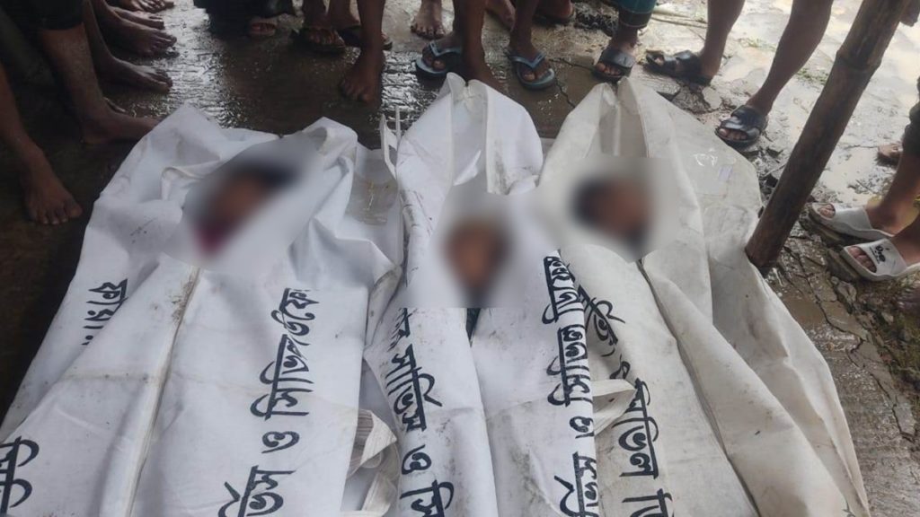 নিহতরা হলো, সদর উপজেলার গোবিন্দপুর গ্রামের সোহেল মিয়ার সন্তান, ফারজানা (১৩), মারজানা (৮) ও রবিন (৪)।
