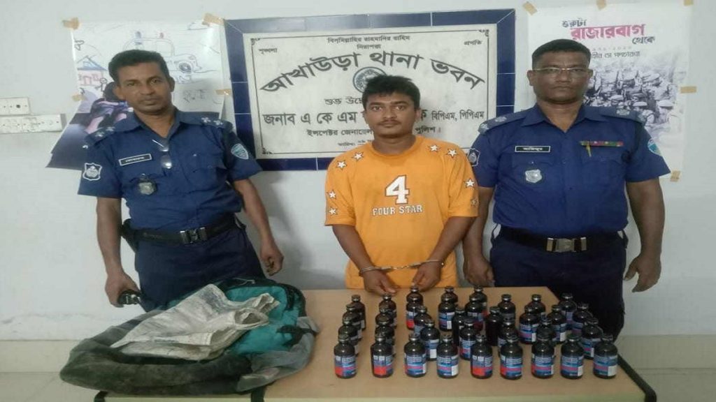 ব্রাহ্মণবাড়িয়ার আখাউড়ায় পুলিশের মাদক বিরোধী অভিযানে স্কুলব্যাগে ৩৫ বোতল ফেন্সিডিলসহ ডালিম মিয়া (২২) নামের এক যুবককে আটক করেছে পুলিশ।