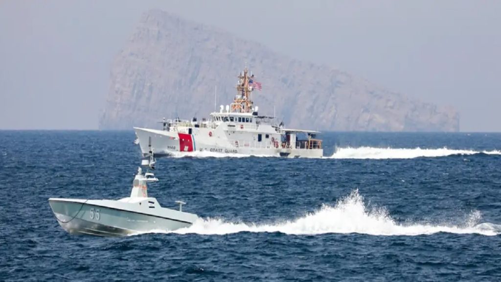 বুধবার (৫ জুলাই) স্থানীয় সময় রাত একটার দিকে ওমান উপসাগরে মার্শাল আইল্যান্ডসের পতাকাবাহী টিআরএফ মস’ নামের জাহাজটির কাছাকাছি পৌঁছায় ইরানের নৌবাহিনী। কিন্তু, মার্কিন জাহাজ এলে ইরানিরা সরে যায় ঘটনাস্থল থেকে।