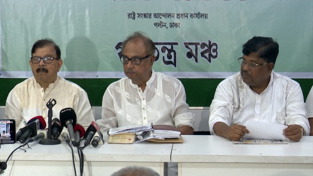 শনিবার (৮ জুলাই) সকালে রাষ্ট্র সংস্কার আন্দোলনের কেন্দ্রীয় কার্যালয়ে গণতন্ত্র মঞ্চের সংবাদ সম্মেলনে এসব কথা বলেন তারা।