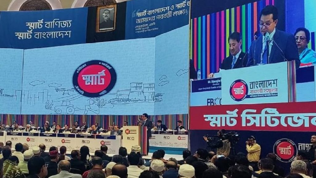 শনিবার (১৫ জুলাই) বিকেলে রাজধানীর বঙ্গবন্ধু আন্তর্জাতিক সম্মেলন কেন্দ্রে (বিআইসিসি) দেশের ব্যবসায়ীদের শীর্ষ সংগঠন দি ফেডারেশন অব বাংলাদেশ চেম্বার্স অব কমার্স অ্যান্ড ইন্ডাস্ট্রির (এফবিসিসিআই) আয়োজনে স্মার্ট বাংলাদেশ বিনির্মাণে ব্যবসায়ী সম্মেলনে তারা এ প্রত্যয় ব্যক্ত করেন।