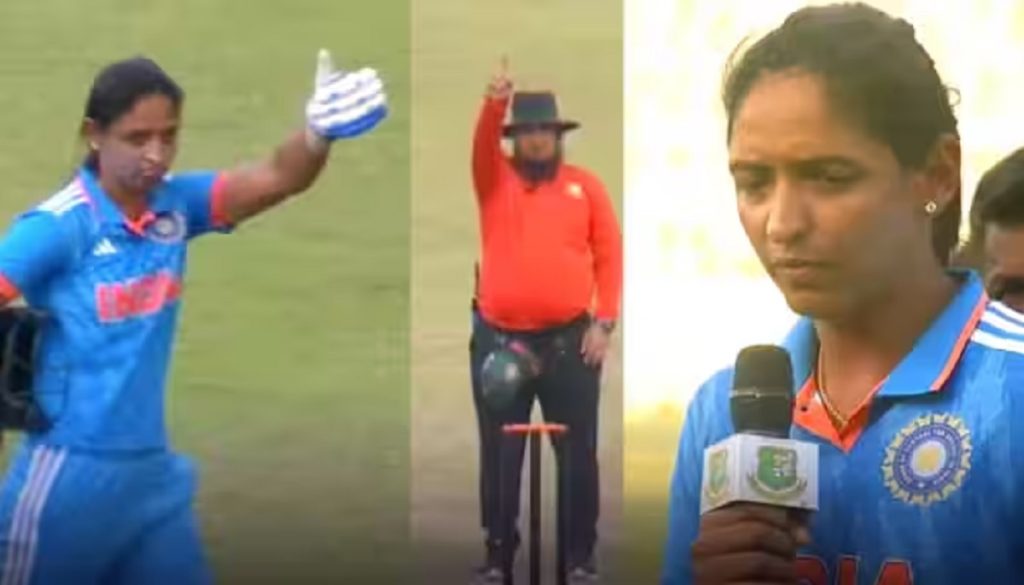 আর্ন্তজাতিক ম্যাচে আম্পায়ারের সিদ্ধান্ত পছন্দ না হলেও কোড অব কন্ডাক্টের কারণে প্রতিক্রিয়া চেপে রাখেন খেলোয়াড়রা। ফুঁসতে থাকেন, কিন্তু সেটা এড়িয়ে যান; প্রকাশ করেন না। কিন্তু ভারতের নারী দলের অধিনায়ক হারমানপ্রিত কৌর এসবের ধার ধারলেন না। সিরিজ জিততে না পারার জন্য সরাসরি স্বাগতিক আম্পায়ারদের দায়ী করেছেন তিনি। স্লিপে ক্যাচ আউট হয়ে অগ্নিদৃষ্টিতে তাকিয়েছিলেন আম্পায়ার তানভীর আহমেদের দিকে। রাগে–ক্ষোভে ব্যাট দিয়ে স্টাম্প ভেঙেছেন। ম্যাচ শেষে আচরণবিধির মাত্রা যেন অনেকটাই ছাড়িয়ে গিয়ে বলেছেন, আগামীতে বাংলাদেশে খেলতে আসলে এ ধরনের আম্পায়ারিংয়ের মুখোমুখি হওয়ার প্রস্তুতি নিয়ে আসবেন।