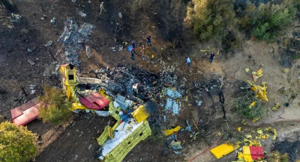 মঙ্গলবার (২৫ জুলাই) গ্রিসের রাষ্ট্রীয় টেলিভিশন ‘ইআরটি’ বিধ্বস্ত বিমানের ভিডিওচিত্র প্রকাশ করে। বিমান বাহিনী জানায়, সিএল-টুওয়ানফাইভ অগ্নিনির্বাপক বিমানটি দুর্যোগ কবলিত এলাকায় পানি ছড়ানোর জন্য যায়। কিন্তু, ইভিয়া আইল্যান্ডের একটি গাছের সাথে আটকে যায় উড়োযানের পাখা। মুহুর্তেই সেটি ভূপাতিত হয়। ছড়িয়ে পড়ে আগুন।