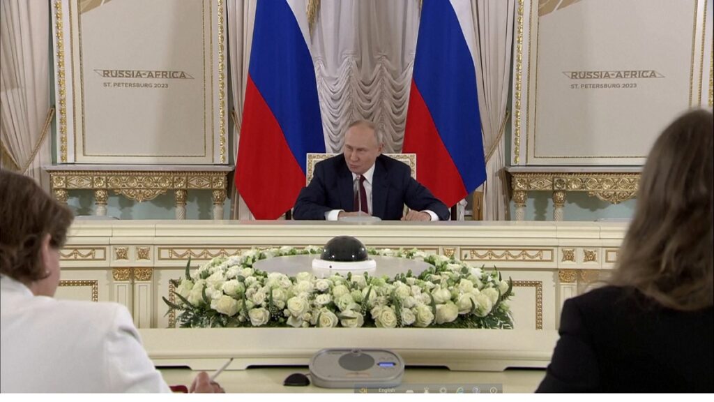 রাশিয়ার প্রেসিডেন্ট ভ্লাদিমির পুতিন বলেন, ইউক্রেন যেখানে হামলা চালিয়ে যাচ্ছে, তখন আমরা গুলি না চালিয়ে থাকতে পারি না। আমরা কখনও শান্তি আলোচনার প্রস্তাব প্রত্যাখ্যান করিনি। আমার মনে হয়, শান্তি প্রক্রিয়ার পথে নিয়ে যেতে আফ্রিকার এই প্রস্তাব ভালো একটি ভিত্তি হতে পারে। যেমনটি চীনের উদ্যোগ হতে পারে।