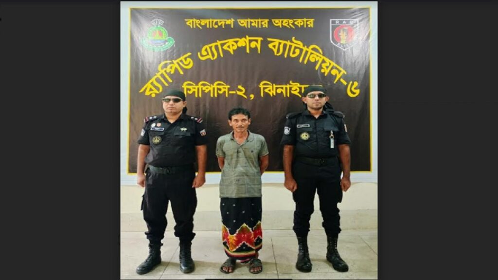 ঝিনাইদহে এক অভিযুক্ত ধর্ষককে গ্রেফতার করা হয়েছে। রোববার (৬ আগস্ট) দুপুরে বিষয়খালী বাজার থেকে তাকে গ্রেফতার করে র্যাব-৬। গ্রেফতারকৃত আসামি ঝিনাইদহ সদর উপজেলার মৃত ইউসুফ লস্কারের ছেলে তুহিন লস্কার (৪২)।