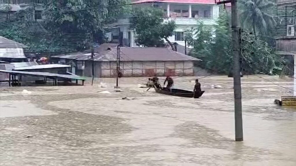 ভারী বর্ষণে বান্দরবানের সাঙ্গু নদীর পানি বেড়ে প্লাবিত হয়েছে তীরবর্তী এলাকা। সড়কের ওপর দিয়ে বইছে নদীর জল। ভারী বৃষ্টি ও জোয়ারের পানি ঢুকে পড়েছে কাশেম পাড়া, আর্মিপাড়া, স-মিল রোডে। রোয়াংছড়ি উপজেলার কয়েকটি এলাকাও প্লাবিত হয়েছে।