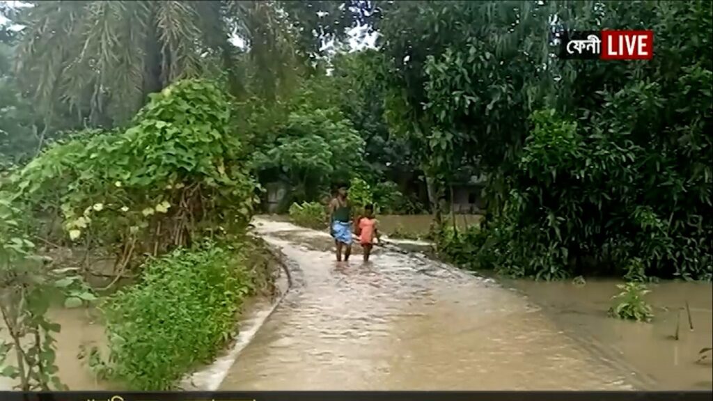 ফেনীতে মুহুরী নদীর বেড়িবাঁধে নতুন করে ভাঙন দেখা দিয়েছে। ফলে লোকালয়ে পানি ঢুকছে।
