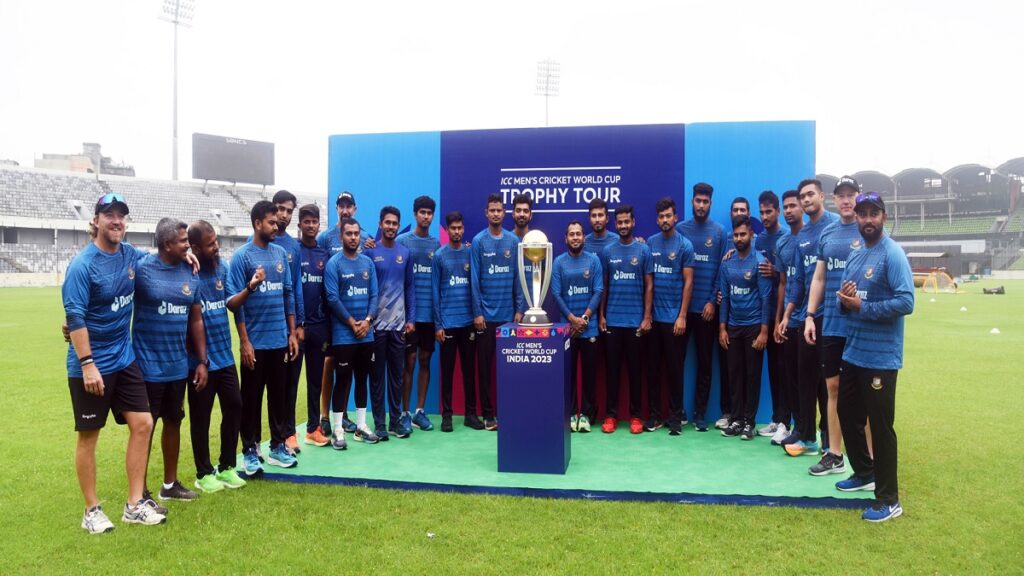 মিরপুরের হোম অব ক্রিকেটে হয়ে গেলো আইসিসি ওয়ানডে বিশ্বকাপ ট্রফির ফটোসেশন। কয়েক দফায় ৬ ঘণ্টারও বেশি সময় ধরে চলেছে ট্রফির সাথে ফটোসেশন। পুরুষ ও নারী জাতীয় দলের পাশাপাশি ট্রফির সাথে ছবি তুলেছেন বিকেএসপি ও অনূর্ধ্ব-১৯ দলের সদস্যরা। এছাড়া বিসিবির সংশ্লিষ্টরাও অংশ নিয়েছিলেন ফটোসেশনে। বিশ্বকাপ ট্রফি কাছে পেয়ে জানান তাদের অনুভূতি।