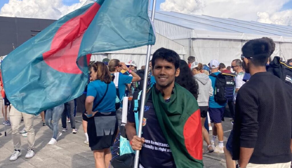 ‘১১৫ দেশ, ৬০০০ পার্টিসিপ্যান্ট। আর স্পীকার থেকে ভেসে আসছে “Here is Bangladesh! One Athlete! Welcome Bangladesh in Finland.”