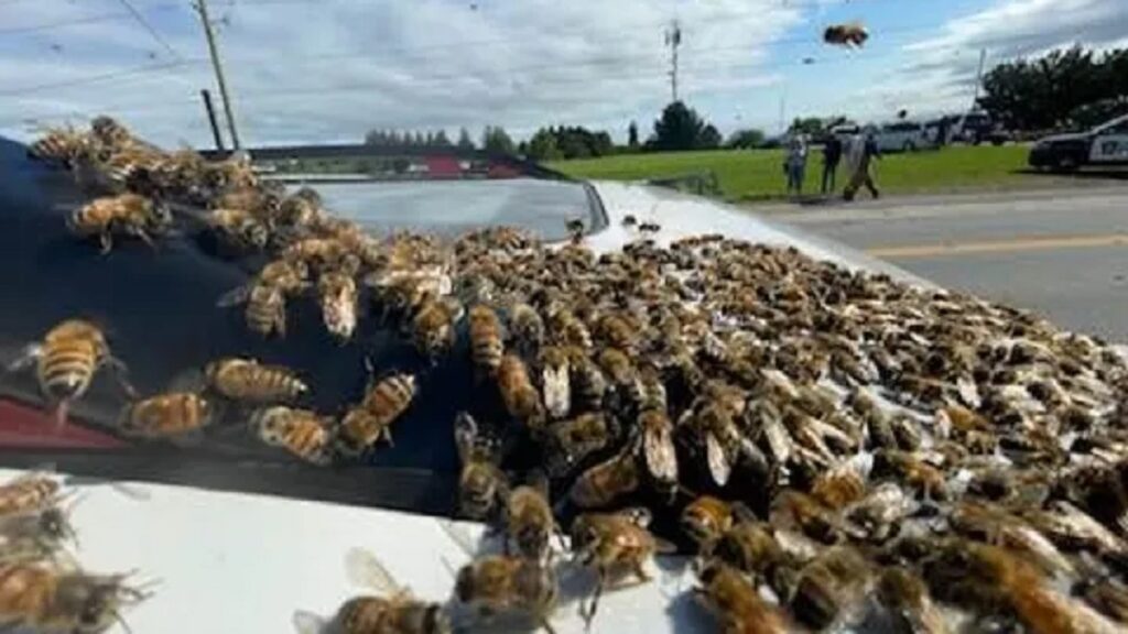 বুধবার (৩০ আগস্ট) সকালে এ ঘটনা ঘটে। এ সময় মাইকেল বারবার নামে এক মৌমাছি পালনকারীকে সাহায্যের জন্য ফোন করে কানাডীয় পুলিশ। এ সময় দ্রুত সাহায্যের জন্য আরও মৌমাছি পালনকারীকে ঘটনাস্থলে পৌঁছাতে বলা হয়।