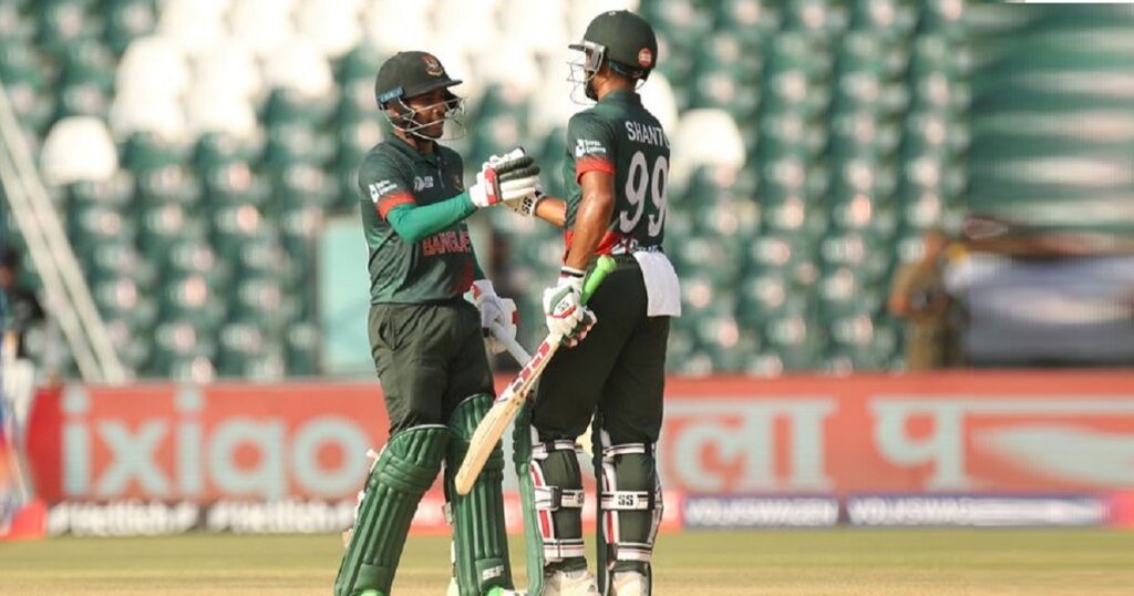 ১১৭ বলে মিরাজ-শান্ত জুটির সেঞ্চুরি পূরণ হয়। এর মধ্যে বাংলাদেশ পেরিয়ে গেছে দেড়শ রানের গণ্ডিও। খানিক বাদে হাফ সেঞ্চুরি তুলে নিয়েছেন ৫৭ বলে শান্ত। ফজলহক ফারুকির লেংথ বলে স্কয়ার দিয়ে পুল করে ছক্কা মেরে টানা দুই ম্যাচে হাফ সেঞ্চুরির দেখা পেলেন এই বাঁহাতি ব্যাটার।