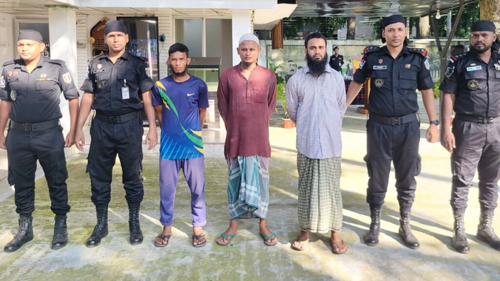 গ্রেফতারকৃতরা হলেন, দিনাজপুরের কেরামত আলীর ছেলে মুনতাসীর বিল্লাহ (৩৬), রিয়াজুল ইসলামের ছেলে আব্দুল মালেক (৩৩), মৃত আব্দুস সালামের ছেলে সাব্বির হোসেন (২০) এবং ঠাকুরগাঁও সদর এলাকার মহসীন আলীর ছেলে মো. ইয়াছিন (১৭)।