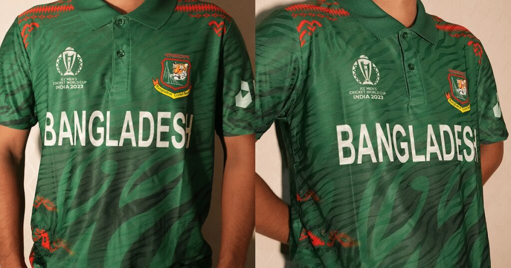 বাংলাদেশ দলের জার্সি নিয়ে সবসময় আগ্রহ থাকে টাইগার ভক্তদের। আর বিশ্বকাপের জার্সি হলে আগ্রহটা বেড়ে যায় কয়েকগুণ। ভারতের উদ্দেশে উড়াল দেয়ার আগের দিন মঙ্গলবার (২৬ সেপ্টেম্বর) জার্সি উন্মোচন করেছে বাংলাদেশ ক্রিকেট বোর্ড (বিসিবি)। যথারীতি সবুজ ও লাল রঙের মিশেলে তৈরি করা হয়েছে জার্সি। ইতোমধ্যে ভক্তদের মন জয় করেছে সেই জার্সি।