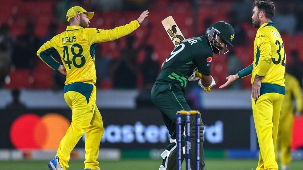 উইকেটে আসার পর থেকেই আক্রমণাত্মক ব্যাটিং করেন গ্লেন ম্যাক্সওয়েল। পাকিস্তানি বোলারদের বাজে বল পেলেই সীমানা ছাড়া করেছেন এই মারকুটে ব্যাটার। শাদাব খানের বলে বাবর আজমকে ক্যাচ দিয়ে প্যাভিলিয়নে ফেরার আগে ৭১ বলে ৪ বাউন্ডারি ৬ ছক্কায় ৭৭ রান করেন ম্যাক্সওয়েল। শেষে এসে আক্রমণাত্মক ব্যাটিং করেন জশ ইংলিশ। তাকে যোগ্য সঙ্গ দেন ক্যামেরন গ্রিন। ৩০ বলে ৮ বাউন্ডারি ও ১ ছক্কায় ৪৮ রান করে প্যাভিলিয়নে ফেরেন ইংলিশ। গ্রিনের ব্যাট থেকে আসে ৪০ বলে ৫০ রানের ইনিংস। শেষ পর্যন্ত নির্ধারিত ৫০ ওভারে ৭ উইকেটে ৩৫১ রানের পাহাড় গড়ে অস্ট্রেলিয়া।