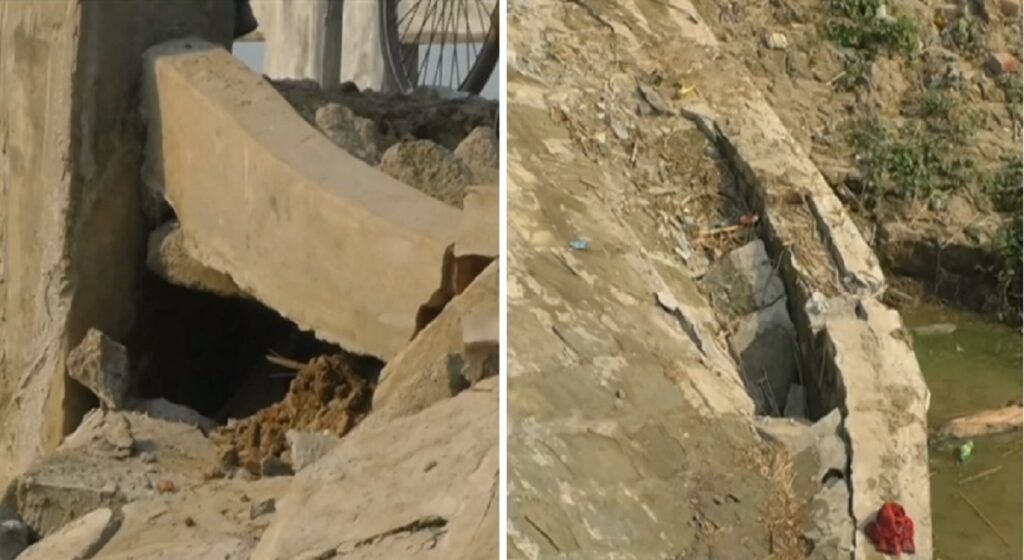 চুয়াডাঙ্গা দামুড়হুদার পাটাচোরা-বাঘাডাঙ্গা গ্রামবাসীর দীর্ঘদিনের দাবি ছিল এই সেতু। দুর্ভোগ কমাতে ভৈরব নদের উপরে নির্মাণ করা হয় ৯৬ মিটারের সেতুটি। নির্মাণ কাজ শেষ হয়েছে গতমাসে। অথচ ফাটল দেখা দিয়েছে গাইড ওয়ালে। কংক্রিটের ব্লকও খসে পড়েছে।
