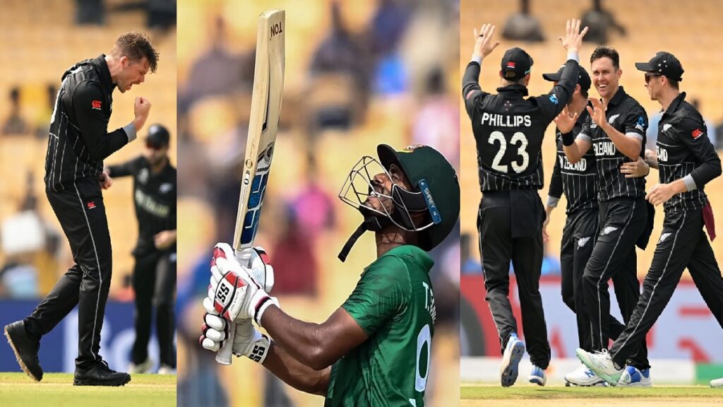 ব্যাটিংয়ে নেমে ইনিংসের প্রথম বলেই গোল্ডেন ডাক মেরে আউট হন লিটন দাস। ট্রেন্ট বোল্টের বলে হুইপ শট খেলে ফাইন লেগে ম্যাট হেনরির হাতে ক্যাচ আউট হন এই ওপেনার। আরেক ওপেনার তানজিদ হাসান তামিমও ফিরেছেন ব্যক্তিগত ১৬ রান করে। ইনিংসের অষ্টম ওভারের শেষ বলে লকি ফার্গুসনের বলে কনওয়ের হাতে সহজ ক্যাচ দিয়ে সাজঘরে ফেরেন তিনি।