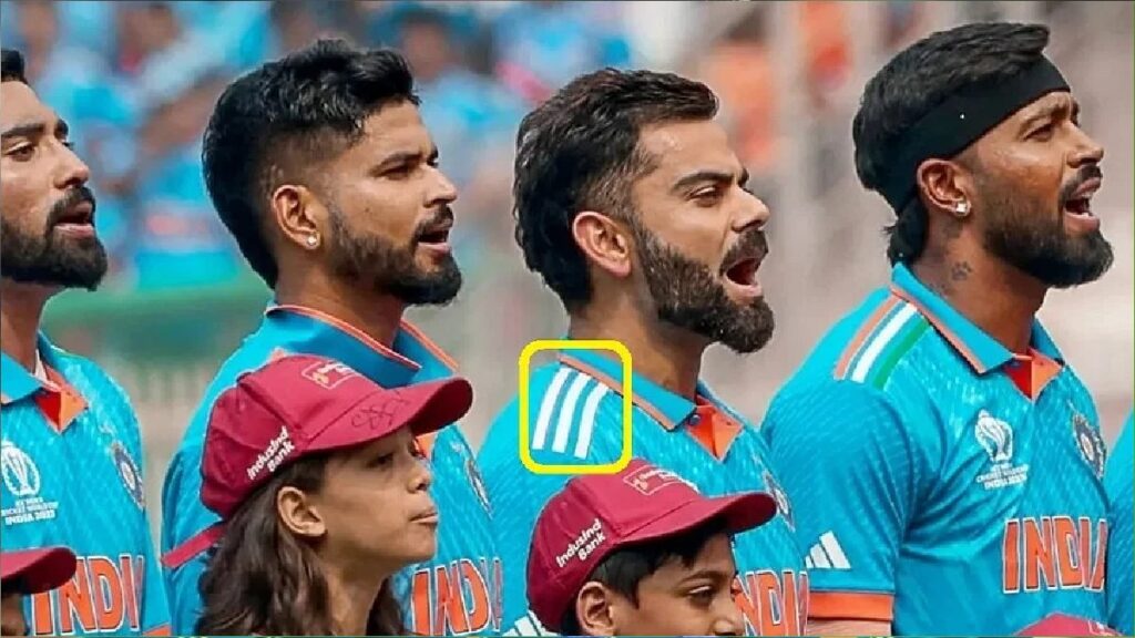 দলের সবাই তিন রঙের স্ট্রাইপের জার্সি পরে খেলতে নামলেও কোহলি সাদা স্ট্রাইপের জার্সি পরে নেমেছিলেন। টসের পর দুই দল জাতীয় সঙ্গীত গাওয়ার জন্য সারিবদ্ধভাবে দাঁড়ালে বিষয়টি সবার নজরে আসে। জাতীয় সংগীত শেষে শচীন টেন্ডুলকারের সঙ্গে আলিঙ্গনও করেন কোহলি। এরপর ফিল্ডিং করতে নেমে যান।