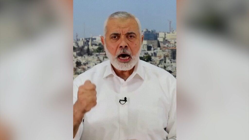 ফিলিস্তিনের সশস্ত্র গোষ্ঠী হামাসের প্রধান ইসমাইল হানিয়া এক ভিডিও বার্তায় আরব ও মুসলিম বিশ্বকে নিন্দা জানানোর আহ্বান জানান।
