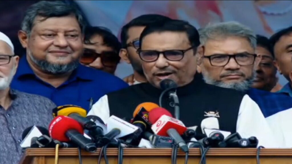 আওয়ামী লীগ সাধারণ সম্পাদক ওবায়দুল কাদের বিএনপির উদ্দেশে ‘শেষ বার্তা’ দিয়েছেন। বললেন, উনার (মির্জা ফখরুল) কথা গরম, হুঁশিয়ারি উচ্চারণ করে। আমাদের ভয় দেখায়। আমাদের ক্ষমতা ছেড়ে দেয়ার বার্তা দিচ্ছেন। আজ আমি শেষ বার্তা দিয়ে দিচ্ছি, শেখ হাসিনা নির্বাচনকালীন সরকারের প্রধান থাকবেন। আল্লাহর রহমতে জনগণের ভোটে তিনি আবার প্রধানমন্ত্রী হবেন। এর কোনো ব্যত্যয় হবে না।