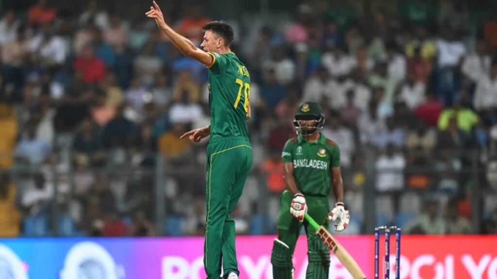 বিশ্বকাপে নিজেদের পঞ্চম ম্যাচে বাংলাদেশের বিপক্ষে কুইন্টন ডি ককের ১৭৪ রানের অনবদ্য সেঞ্চুরির পর হেনরিখ ক্লাসেনের ঝড়ো ৯০ রানের ওপর ভর করে ৩৮২ রানের পাহাড় গড়ে দক্ষিণ আফ্রিকা। লক্ষ্য তাড়া করতে নেমে মাত্র ৩১ রান তুলতেই ৩ উইকেট হারিয়ে ধুঁকছে টাইগাররা। একে একে সাজঘরে ফেরেন তানজিদ তামিম, নাজমুল হোসেন শান্ত ও সাকিব আল হাসান। প্রোটিয়াদের হয়ে মার্কো জানসেন নেন ২ টি ও উইলিয়ামস নেন ১ টি উইকেট।